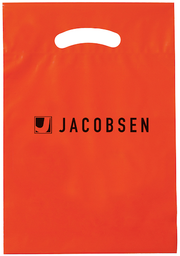 Size: 9" W x 13" H / No Gusset Front Imprint Area: 6” W x 6” H Film Thickness: 2.5 mil low density *Please note: Black, Navy and Hunter Green bags can only be printed with Metallic Gold, Metallic Silver, and Metallic Copper flexo inks. Click here to see the Fold-Over Reinforced Die Cut Bags Reference Sheet |