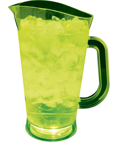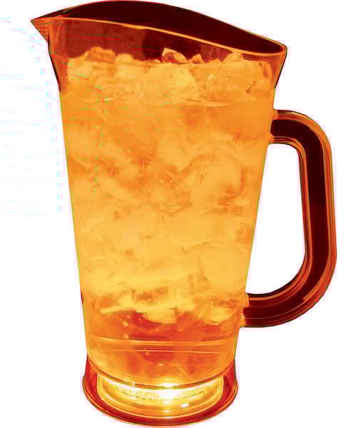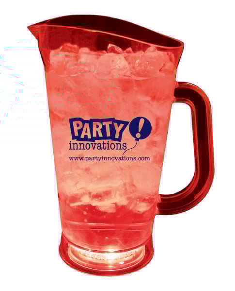 Add your custom logo to our 70 oz. fun, lighted clear plastic pitcher with 3 options of light effects. Perfect for trendy bars, nightclubs and other hot spots. Imprint Area: 3 in. W x 4 in. H (per side) Please note: Wrap printing in not available for this item. *Lighted pitchers illuminate best in dark conditions. No warranty is expressed as to one's expectation of light brilliance or length of battery life. |