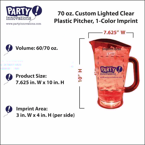 70 oz. Custom Lighted Clear Plastic Pitcher, 1-Color Imprint