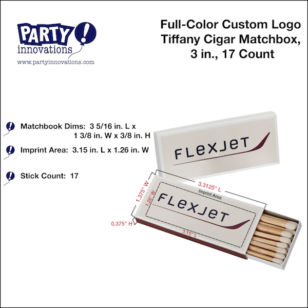 Full-Color Custom Logo Tiffany Matchbox, 3 inch, 17 Count This product is sold in increments of 25